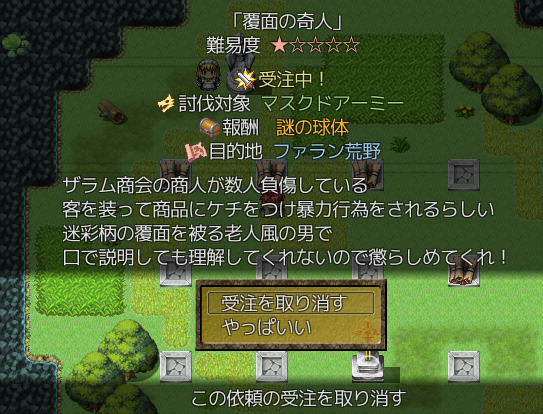 首都ザントパラストには傭兵ギルドなるものがあり 腕利きの冒険者や賞金稼ぎが一攫千金を求め行き来しています 報酬はお金以外にも財宝や秘伝書など色々 旅立ったばかりのアダラト達には とても手に負えない依頼ばかりですが 冒険を進め強くなった頃には 多くの依頼を達成することができるでしょう |