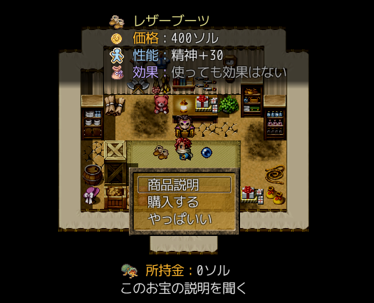 この国の代表的な行商組合の一つザラム商会 ザントパラスト各地でお店を開いており 冒険に役立つおたからを購入することができます アダラトはお得意様なので掘り出し物や 貴重なおたからもここでゲットできるはず ただし、一切まけてはくれないので 色々欲しくてももしっかり考えて購入しましょう |