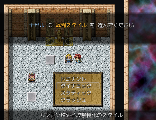 パーティはアダラト含む3人で冒険します ここでは編成だけでなく仲間のスタイルを変更できます 主人公と違って仲間はBM-Eを扱えない代わりに スタイルと呼ばれるもので用途に合わせ切り替えます どのような戦略で進むのかはプレイヤー次第です |