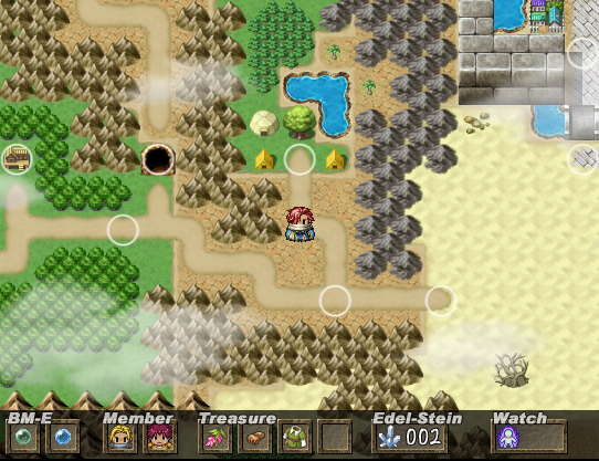 世界は一つで繋がっています しかし、ボタン一つでこのように世界地図を歩くように移動が可能 一度訪れたポイントには ○のアイコンからその場所へ移動できます ダンジョンでは使用できません |