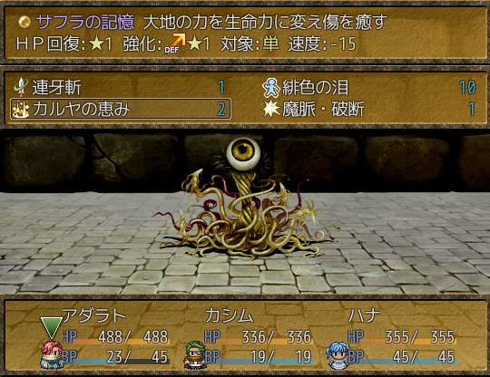 特定のとくぎは発動後に稀に全く別の特技が発動します 最初はあまり意識せずまた、見る機会も少ないですが…… 強くなればその頻度は高くなります 特に強敵との戦いでは追撃が勝利のカギになるかもしれません 頼りないなかまがトドメの一撃を繰り出すなんてことも…… |